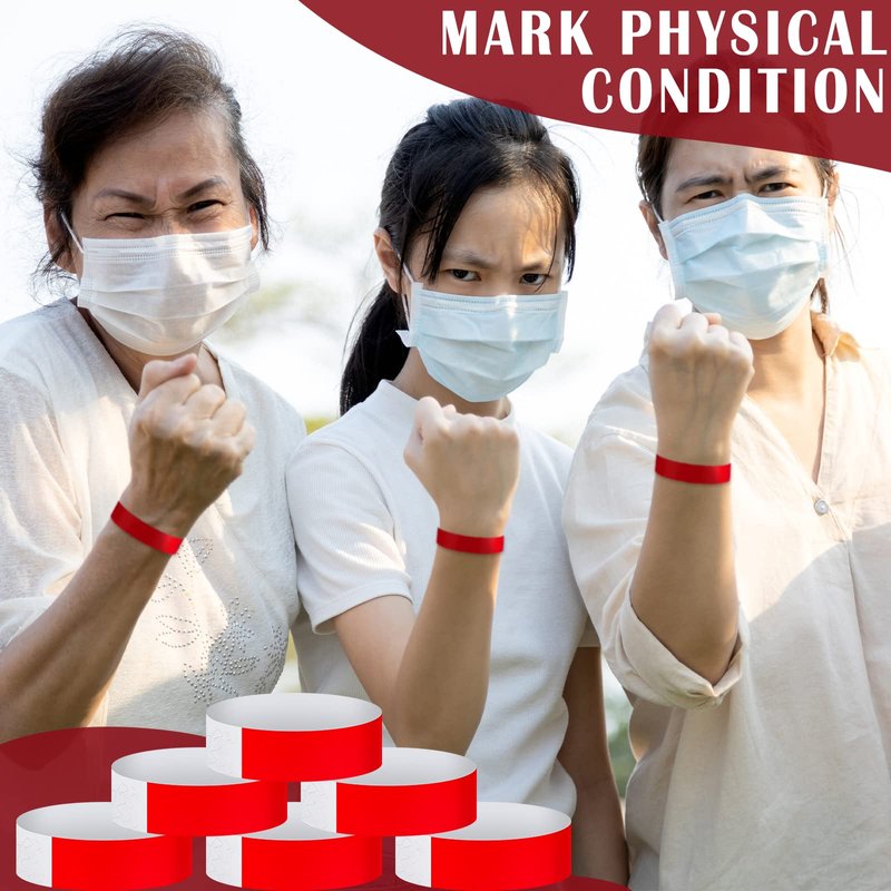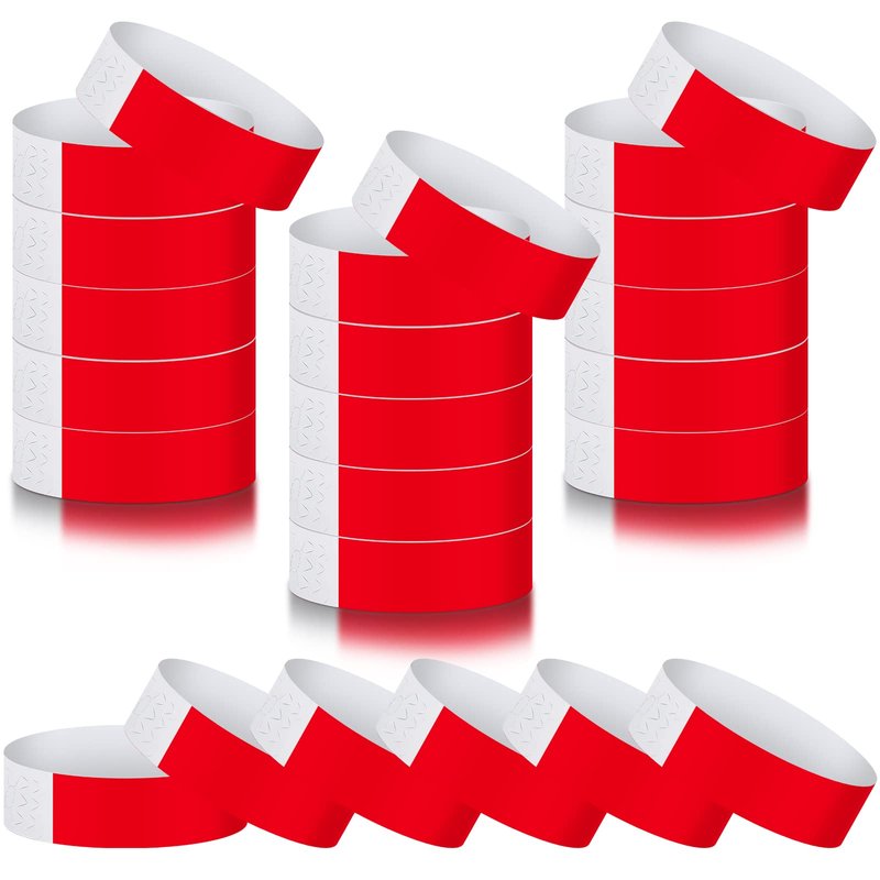 Tudomro 300 Pieces Paper Wristbands for Events Waterproof Neon Wrist Bands Concert Identification Wristbands Hand Bands for Events Adhesive Wristbands for Party (Red)