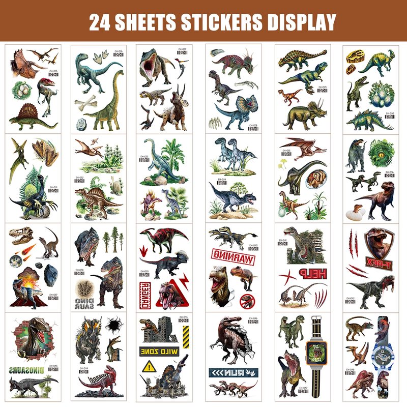 Tuenmofun 24 Sheets Dinosaur Temporary Tattoos for Kids, Individually Wrapped Paper Waterproof Dinosaur Stickers for Boys & Girls Birthday Party Supplies makeup