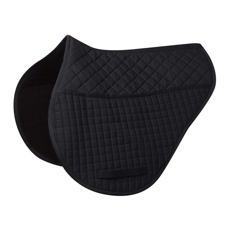 The TuffRider Jumping Saddle Pad is a great match for any close contact saddle. A shaped pad compliments close contact saddles and allows for less friction on the horse's skin. A well padded saddle area cushions the horse's dorsal muscles to maintain comfort, keeping your horse happy all ride long. A gently sloped spine allows for clearance for vertebrae and is especially accommodating to horses with prominent withers. Soft, polyester fabric provides comfort and aids in moisture-wicking to discourage fungal growth. Girth loops stable the pad under the saddle and prevent slippage. Conveniently machine washable, this pad is easily cleaned for worry-free maintenance!Features: Shaped- Compliments Close Contact Saddles100% PolyesterCushioned Saddle AreaGirth LoopsMachine Washable