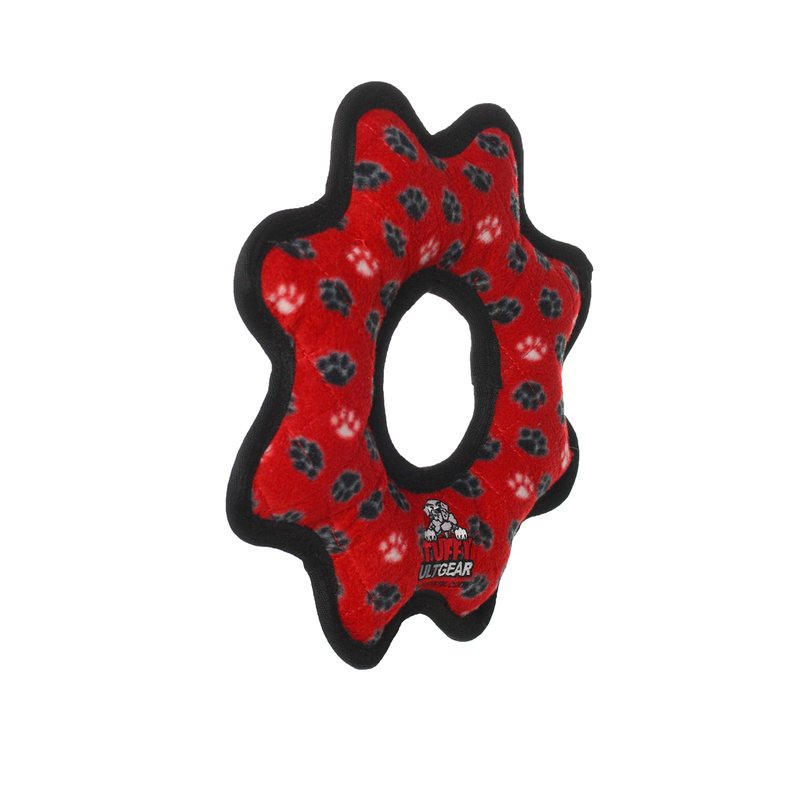 TUFFY-World's Toughest Soft Dog Toy-Ultimate Gear Ring-Squeakers-Multiple Layers.Made Durable,Strong&Tough.Interactive Play (Tug,Toss & Fetch). Machine Washable & Floats (Regular 2 Pack, Red Paw)