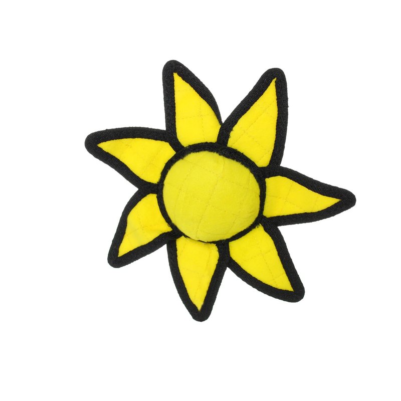 TUFFY - World's Tuffest Soft Dog Toy - Alien Ball Junior Yellow Sun- Squeakers-Multiple Layers. Made Durable, Strong & Tough. Interactive Play (Tug, Toss & Fetch). Machine Washable & Floats