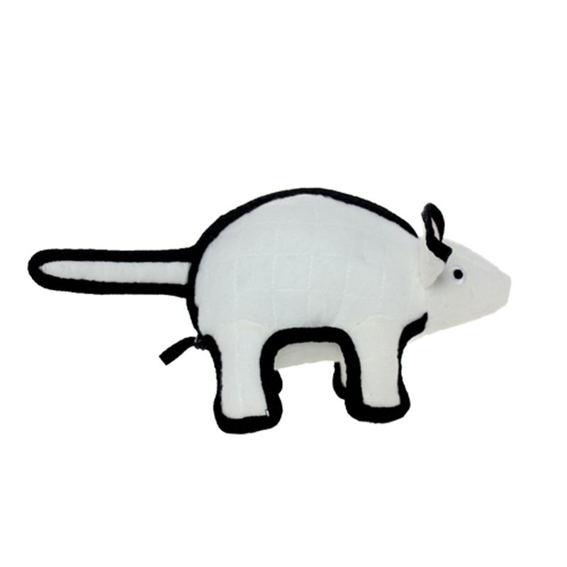 TUFFY - World's Tuffest Soft Dog Toy - Barnyard Mouse - NO Squeakers - Multiple Layers. Made Durable, Strong & Tough. Interactive Play (Tug, Toss & Fetch). Machine Washable & Floats. (Regular White)