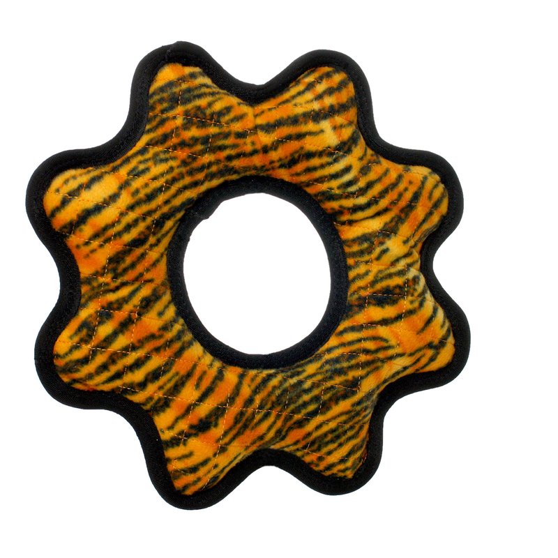 TUFFY - World's Tuffest Soft Dog Toy - MEGA Gear Ring - Squeakers - Multiple Layers. Made Durable, Strong & Tough. Interactive Play (Tug, Toss & Fetch). Machine Washable & Floats. (Tiger 2 Pack)