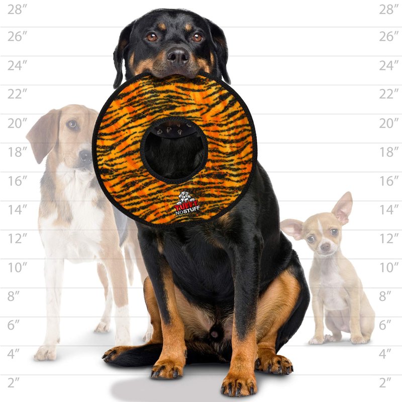 TUFFY® toys are the most durable dog toys on the market! Our MEGA series is made with up to 7 layers of material and 7 rows of stitching, for added durability and strength. A protective webbing is added to the outside edge to cover the seams and make the toy even stronger. TUFFY® toys float in water and are machine washable (air dry). Squeakers are sewn inside protective pouches for your dog’s safety. This extra measure of safety can give you the time you need to remove the toy in the event your dog reaches the core. Our toys are built to last, but keep in mind that no toy is “indestructible”. TUFFY® toys are designed to be used for interactive play and are not chew toys. Please be a responsible dog owner and only allow your dog to play with the toy under supervision. Do not allow your pet to ingest any portion of the toy. We strive to make our toys the strongest and safest on the market. As loving dog owners, we only want the best toys for our dogs and yours!