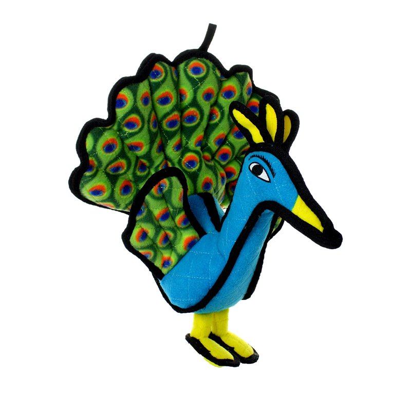 TUFFY - World's Tuffest Soft Dog Toy -Zoo Peacock- Multiple Layers. Made Durable, Strong & Tough. Interactive Play (Tug, Toss & Fetch). Machine Washable & Floats (Combo Pack)