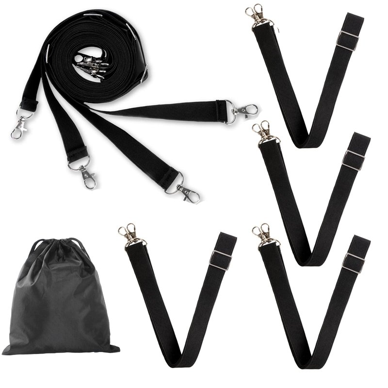Package includes: pack of 4 horse blanket sheet leg straps with a black storage bag