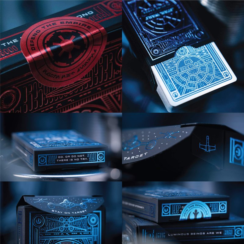 - Intricate Design: The back design of the light side deck showcases countless details, from R2-D2 to the Rebel Alliance symbol, with a repeating pattern of X-wing starfighters and lightsabers along the edges