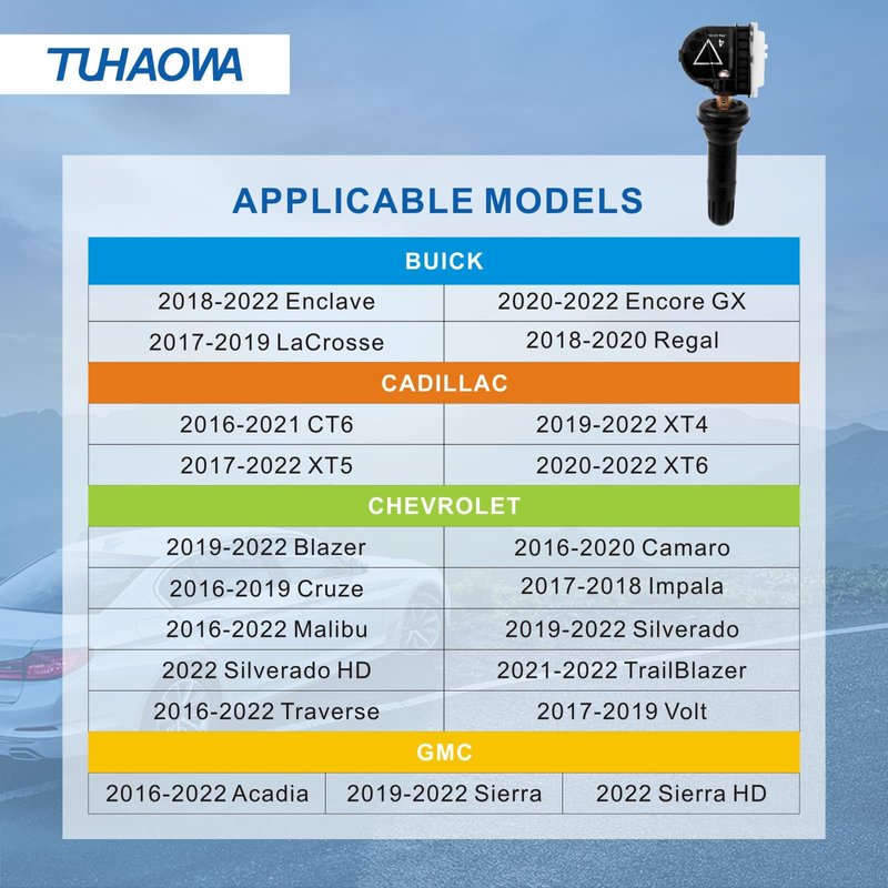- 🚗【FITMENT】This Tire pressure monitoring system sensor is compatible with the original function and performance of TPMS on Chevrolet Cadillac GMC Buick. Please carefully check your car model to avoid the problem of model mismatch.OE: 13598773,13512347,13516165.