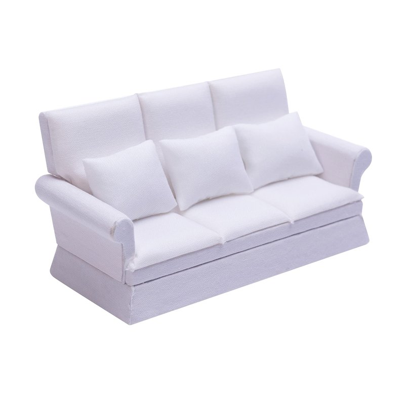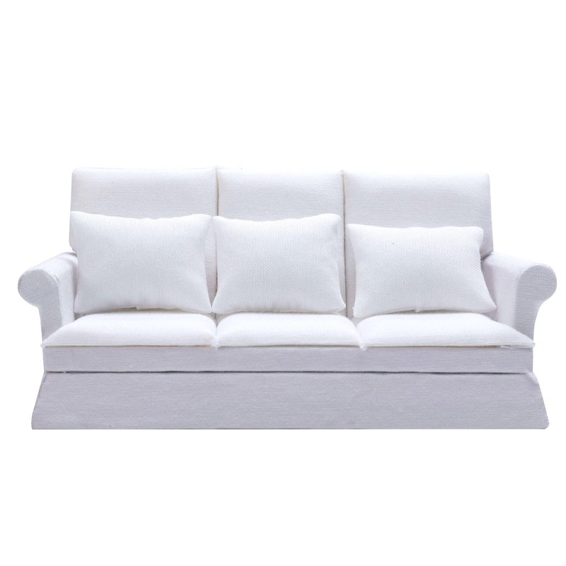 Tukaneeko 1:12 Dollhouse Couch with Three Pillows Mini Dollhouse Furniture Decoration Miniature Sofa for Doll House Living Room