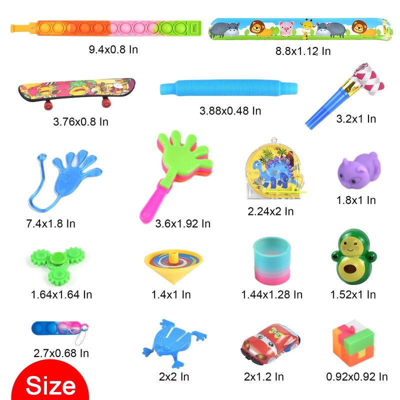 High quality collection of party favor toys assortment for Kids. So many toys can be used in many occasions, such as fidget toys, birthday party supplies, treasure box toys for classroom, goodie bag stuffers, pinata stuffers, Carnival prizes, Valentine's Day gifts, easter basket stuffers, halloween party favors,stocking stuffer toys for Christmas. Such diverse fidget toys are the best gift for your child, bringing endless joy to them Wide variety of play toys birthday party gifts, Christmas gifts, Halloween gifts, Valentine's Day gifts, Easter gifts for kids, can be used as gifts for different party events. These party favors set can be used in the classroom as classroom rewards or classroom treasure chest toys, which can bring joy and fun to children in the classroom or activities, and children will love these prize toys. A variety of toys can develop children's imagination and learning ability, and can enhance the relationship between you and children, Kids will be excited about these toys