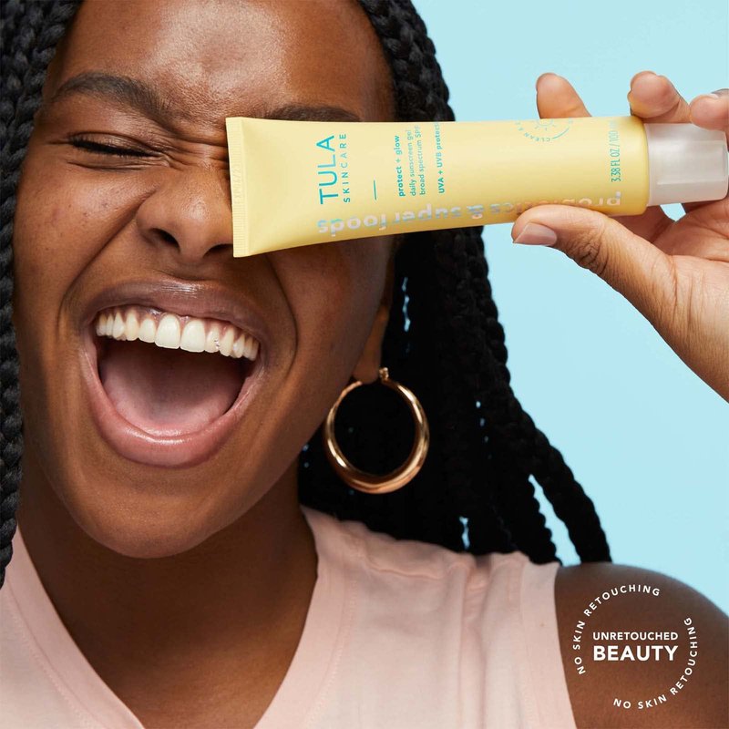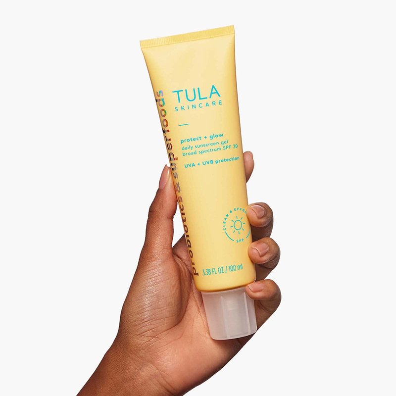 TULA Skin Care Protect + Glow Daily Sunscreen Gel Broad Spectrum SPF 30 - Skincare-First, Non-Greasy, Non-Comedogenic & Reef-Safe with Pollution & Blue Light Protection, Supersize, 3.38 oz