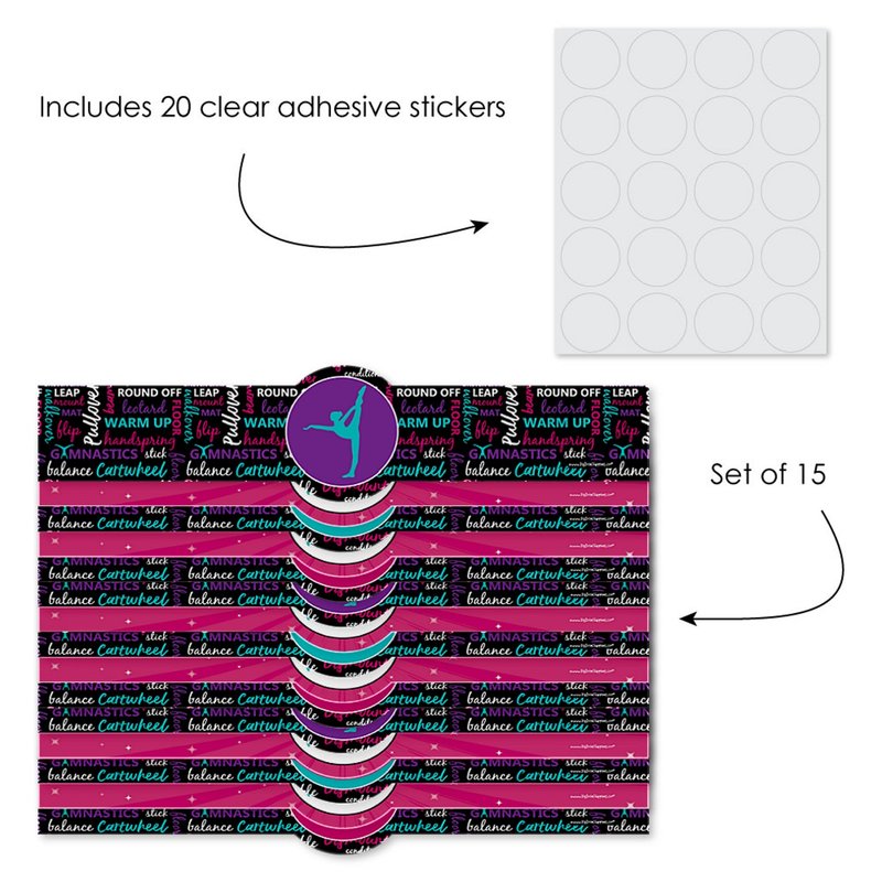 - Tumble, Flip & Twirl - Gymnastics DIY Wrappers INCLUDES 15 gymnast party wrappers and 20 clear stickers. Tumble, Flip & Twirl - Gymnastics DIY party supplies are perfect for a gymnast or birthday party.