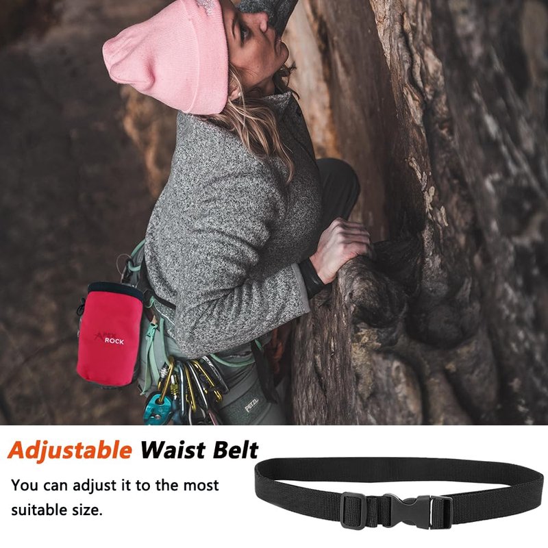 - LIGHTWEIGHT AND CONVENIENT: This climbing chalk bag is lightweight, reducing the burden of equipment in outdoor activities. The waistband is adjustable and suitable for users of all sizes.,you can also adjust the size as needed. Adjusted to the right size, it will fit snugly around the waist, ensuring smooth movement even during intense rock climbing.