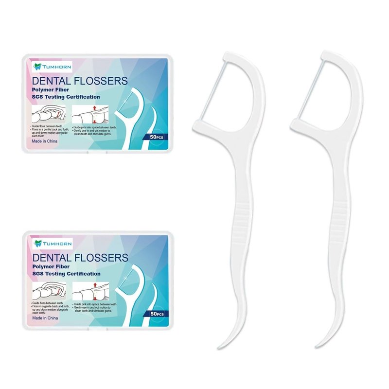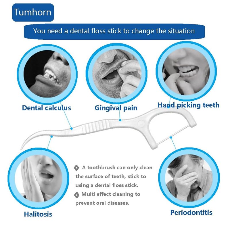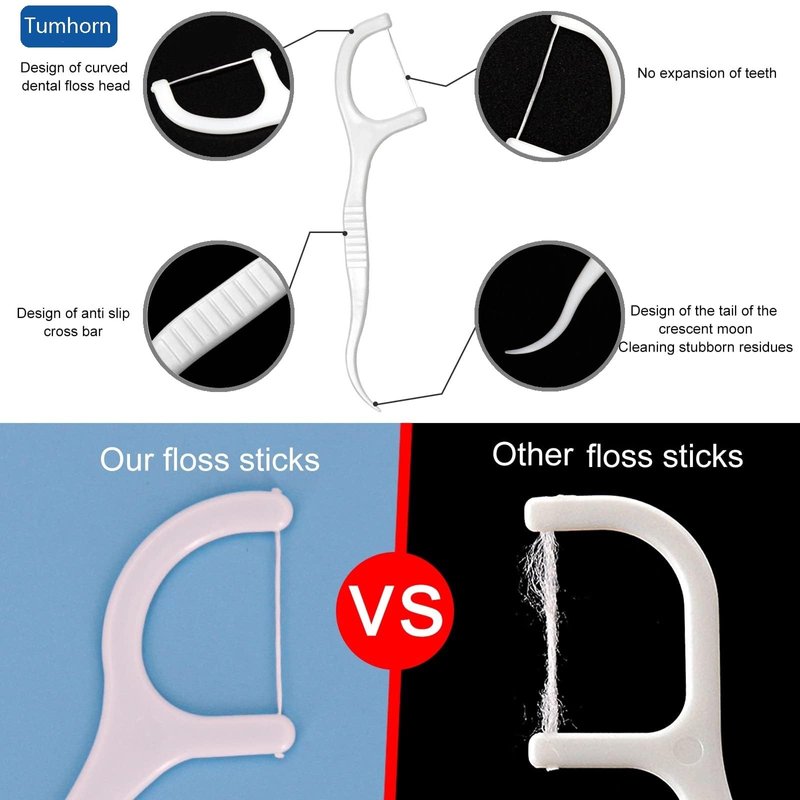 - Tumhorn dental floss picks come in portable and resealable packs. Multiple different combinations to choose from, each box of 50 picks.