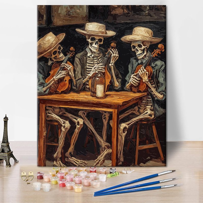 TUMOVO Paint by Numbers for Adults Skeletons Playing Violin Paint Number Kits Cowboy Paint by Number DIY Oil Painting for Adults Kids Paint by Number Kits Home Wall Decoration, 16 x20 Inch