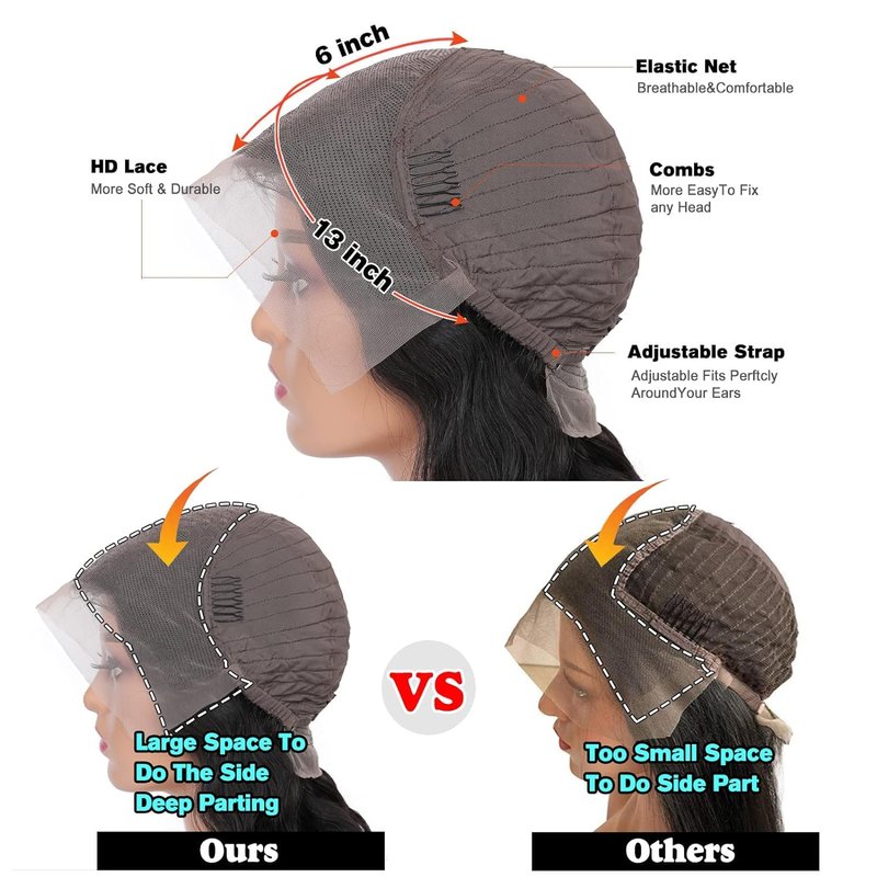 - 【13x6 Lace Front Wigs Human Hair】6 Inch Deep Parting For Full Frontal Wigs. 13X6 Large Lace Square,Allow To Do Lots Of Different Hairstyle, Can Do any Part Design. No Weft Seen when Parting,a Lot More Versatility With This 13x6 Lace Front Wigs Human Hair
