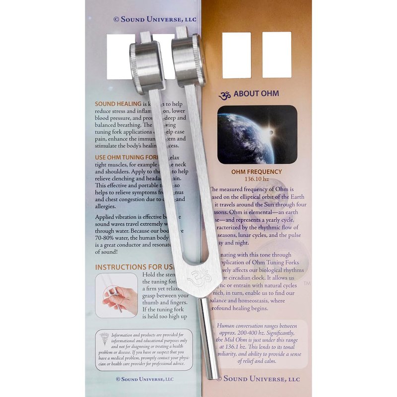 - This listing includes Mid Ohm Tuning Fork (136.1 hz) plus 8-panel instructional card with photos showing how to correctly hold, activate and apply tuning fork.