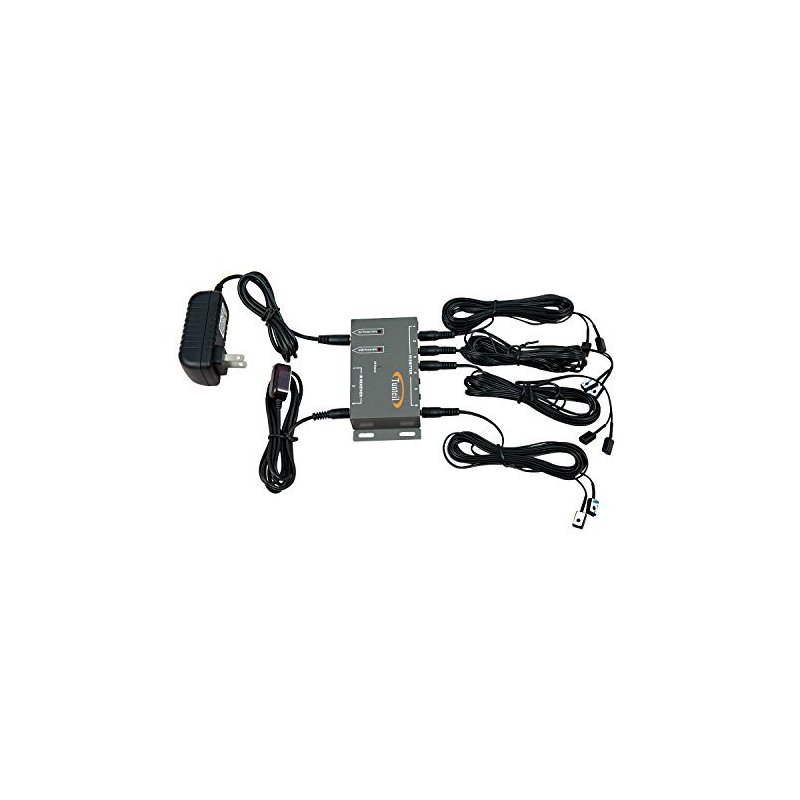 The IR Extender kit includes: 1xDistribution block 1xIR Receiver 1xPower plug 4xDual IR Emitters (control up to 8 devices) 1xUser Manual Hidden IR Repeater System: The Hidden IR Repeater System allows you to use an existing infrared (IR) remote control to operate up to 6 audio/video (A/V) components. If your Home Theater components are hidden behind closed doors or walls in an entertainment cabinet or equipment closet, the Hidden IR Repeater System is the accessory you need to be able to control your components with your remote Specifications: Receive Frequency: 36kHz to 58kHz Transmit Frequency: 36kHz & 58kHz Power: 12VDC Cord Length: IR Emitter: 10ft(3m) ,IR Receiver: 5ft(1.5m) Dimensions: 90*55*26(mm) Weight: 28g How to install? 1.Tape the emitters on the devices like Cable Boxes, Xbox One, Roku, Apple TV, Nvidia Shield and so on,Please tape on the nearby of infrared receiving point. 2.Fix the receiver on the most convennient place by remote control. 3.Plug the emitters & receiver in the infrared remote repeater,connect to power supplies,then you could use it.Important note:Plasma TV's emit IR frequencies that can interfere with the IR receiver of this device (Not applicable to LCD or LED). This can usually be fixed by placing the IR receiver further away from the plasma TV OR by placing a piece of scotch tape over the IR receiver to reduce.( the distance between 2 IR receiver should not be less than 6 m to avoid interference) it's sensitivity! This does not occur with LCD or LEDWhat we care:Our biggest concern isn't with earnings or profits,It's with customers' experiences purchasing and using our products. We want satisfied customers and to develop trust in the Tunteil brand. Freely contact us if you have any issues.