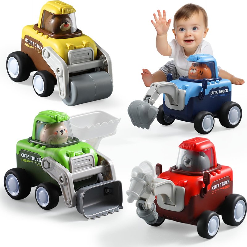 - [Toddler educational toys] Our baby toys car set features colorful and thoughtful animal designs. 4 different animals represent four different Engineering vehicle operator. The cute figure that babies like are very engaging. It can very well stimulate kids imagination and creativity. Running or crawling with car toys can stimulate your baby's athletic talent.It is the best educational toy for babies under 3 years old.
