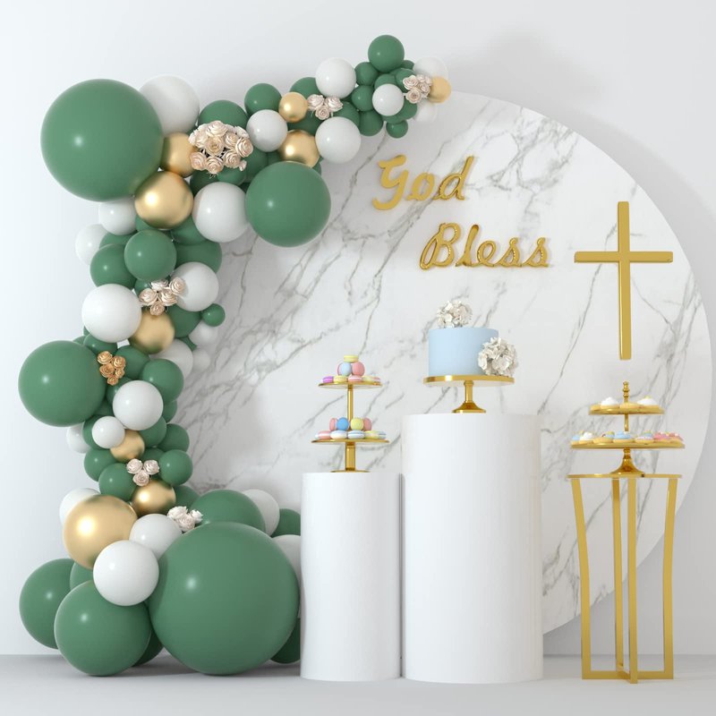 Features: Green balloon garland arch kit includes 4 different sizes with a roll of balloon strip, glue point and balloon ribbon. You can use balloons garland arch kit to make balloon arch/garlands, table centerpieces, or more creative balloon decorations for a birthday party, baby shower, bridal shower, engagement party, etc. Size: 18inch, 12inch, 10inch, 5inch Material: Latex Color: Sage Green Sage Green balloons arch includes: 40 pcs 5inches Sage Green balloons 20 pcs 10inches Sage Green balloons 40 pcs 12inches Sage Green balloons 2 pcs 18inches Sage Greenballoons 1 roll of balloon strip 5 pcs glue point 1 pcs balloon ribbon Warm tips: The colors may exist slight difference due to different screens Please keep these balloons away from fire resources, and keep them away from pointed objects