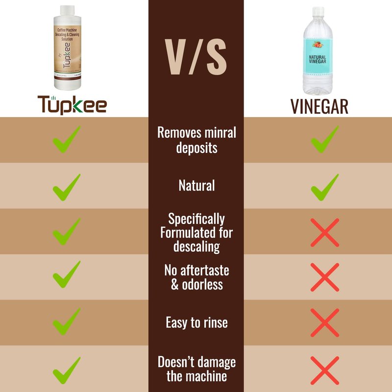 Tupkee Coffee Descaler breaks down mineral buildup and limescale that Vinegar Cannot Remove,