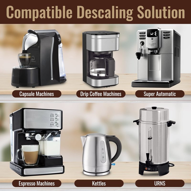 - COMPATIBLE WITH ANY COFFEE MACHINE – automatic / manual machines, pod / capsule / K cup machines, home /commercial machines, kettles / electric water heaters, coffee pot cleaner and descaler, Bunn Coffee maker and all other drip coffee and single-use coffee and espresso machines including for Keurig, Breville, Nespresso, Delonghi, Hamilton Beach, Braun, Bunn, Cuisinart, Tassimo, Krups, Saeco, Mr. Coffee, Ninja, Vertuo, Philips, Gaggia, Moccamaster, Smeg, Oxo, Durgol, Urnex, Lavazza and more!