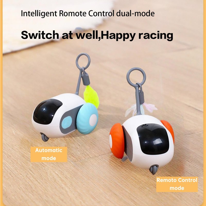 - 2-in-1 smart cat toy :This smart remote control cat toy offers adjustable speeds via the remote, featuring both fast and slow settings to match your cat's mood and activity level. Smart Interactive Mode: The toy automatically moves, shakes, or bounces, providing endless entertainment for your cat without needing app control. Remote Control Mode: Use the remote to directly guide the toy's movements, enhancing interaction and fun with your feline friend