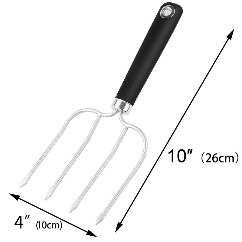 *Extra thick stainless steel tines will not buckle under the weight of even the largest birds or heaviest roasts.