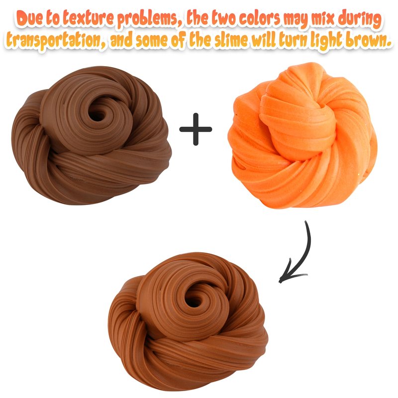 - 【Orange & Brown Butter Slime】 Please note: This slime is packed in two colors, orange and brown, separately. Due to texture problems, the two colors may mix during transportation, and some of the slime will turn light brown.