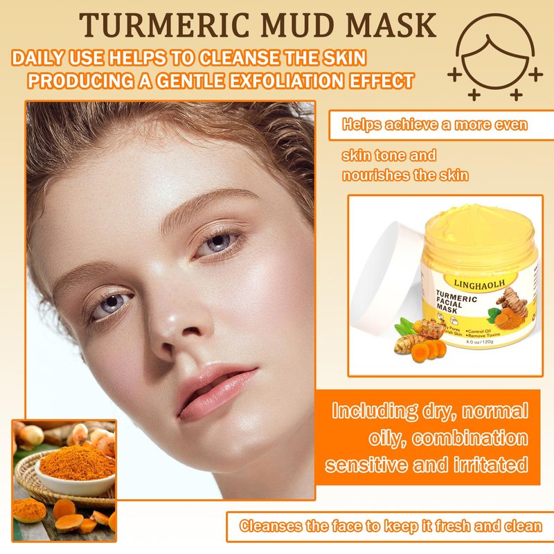 Turmeric Clay Facial Mask,Oil Control Long Lasting Moisturizing Deep Cleansing Face Mud Mask