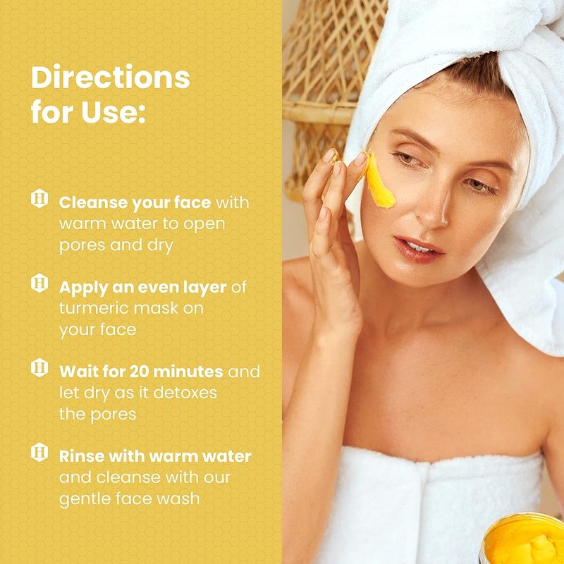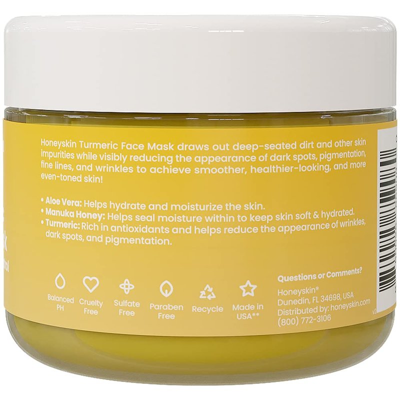 - RESPONSIBLY SOURCED, MADE IN THE USA - HoneyskinTurmeric Face Mask is pH-balanced to mimic your skin’s natural pH level, making it perfect for all skin types. Our turmeric facial masks for women are FREE of parabens, sulfates, & other potentially harmful chemicals. Our skin care products are cruelty-free & 100% made in the USA!