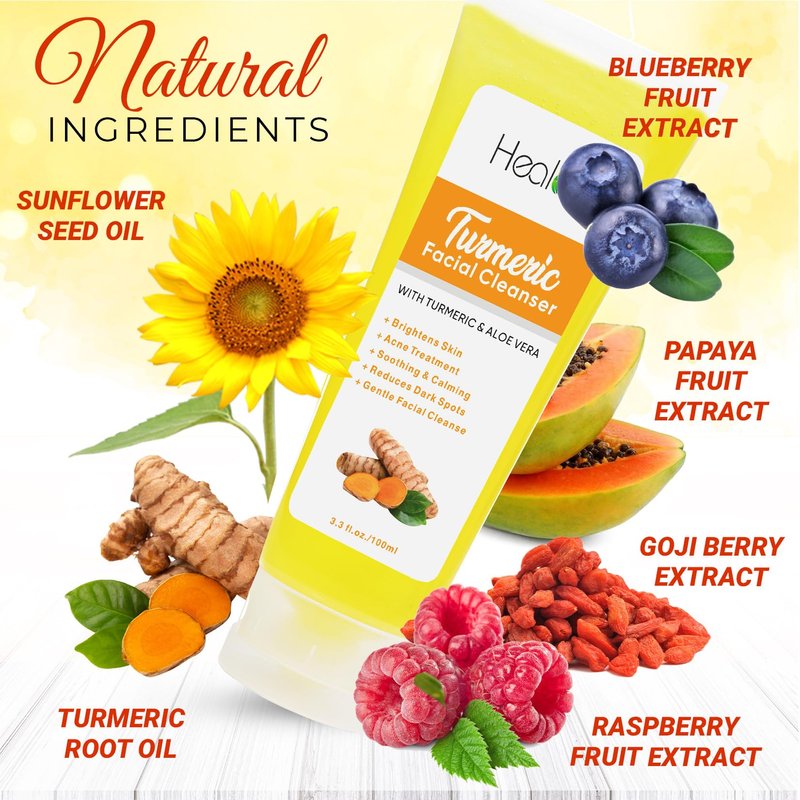 - PLANT-BASED TURMERIC SKINCARE: Our natural skincare products are made out of the purest oils & extracts available. A standout member of our collection, this exfoliating cleanser restores a gorgeous glow to dry, damaged skin.