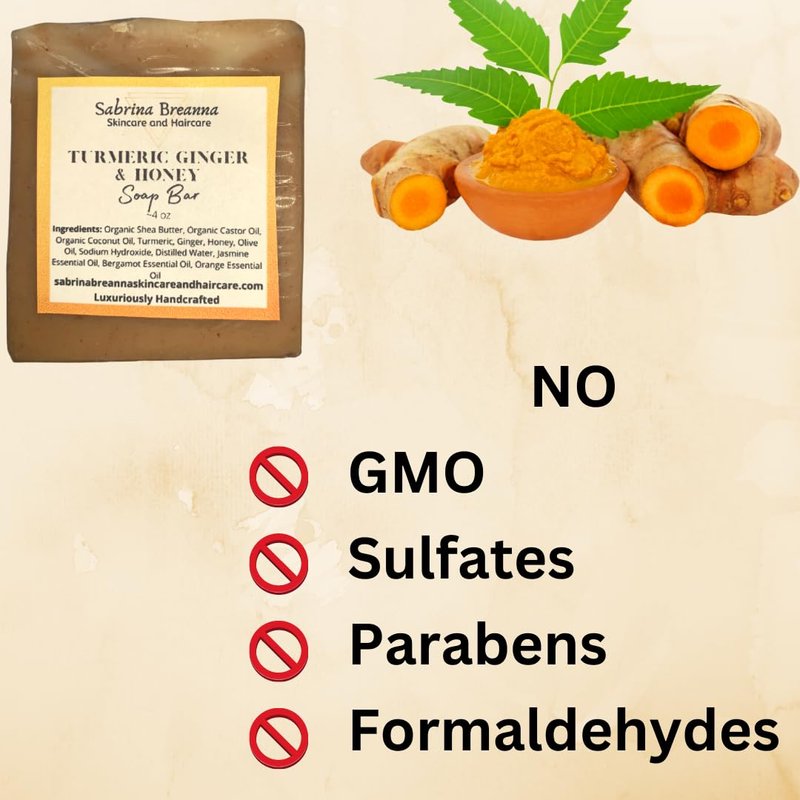 Turmeric Ginger and Honey Soap Bar, Helps Brighten/Fade Dark Marks, Natural and Handmade, for Body and Face, Help Reduce Acne,
