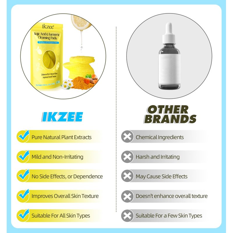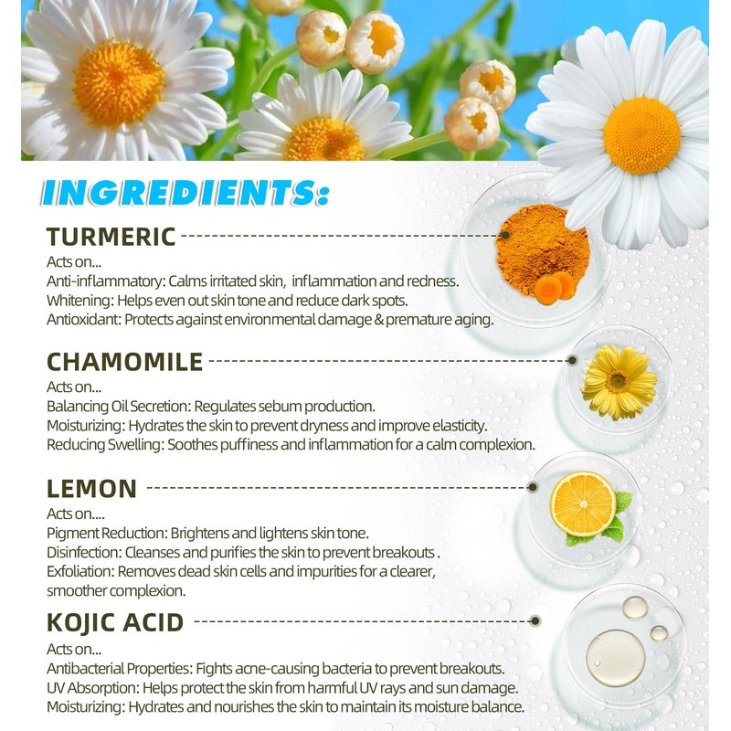 - Natural Ingredients: High-quality turmeric kojic acid pads contains Turmeric, chamomile, lemon mild cleansing ingredients, offer gentle, non-irritating care for all skin types.Helps prevent breakouts and acne from forming
