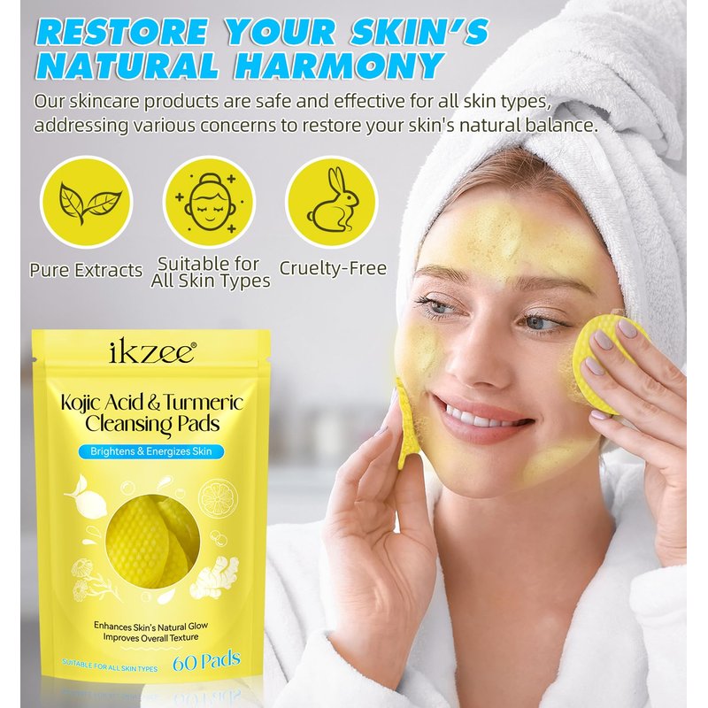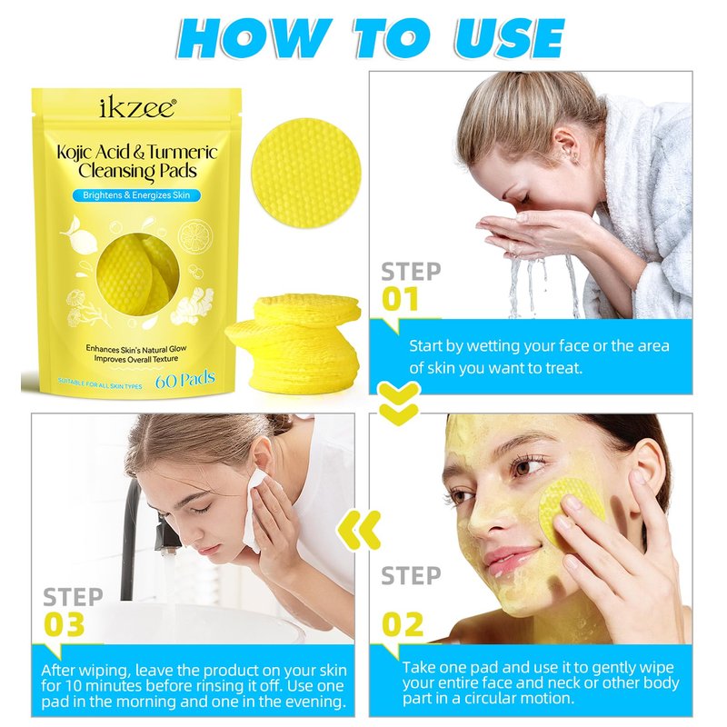 - KOJIC ACID TURMERIC CLEANSING PADS: Made with the finest natural skin-friendly ingredients that nature can offer, these luxuriously soft cleansing pads have a gentle yet firm feel that promotes a smoother, more vibrant complexion with every use, while enhancing overall texture. Ideal for daily face washing, deep pore cleansing, exfoliating, removing impurities and removing makeup.