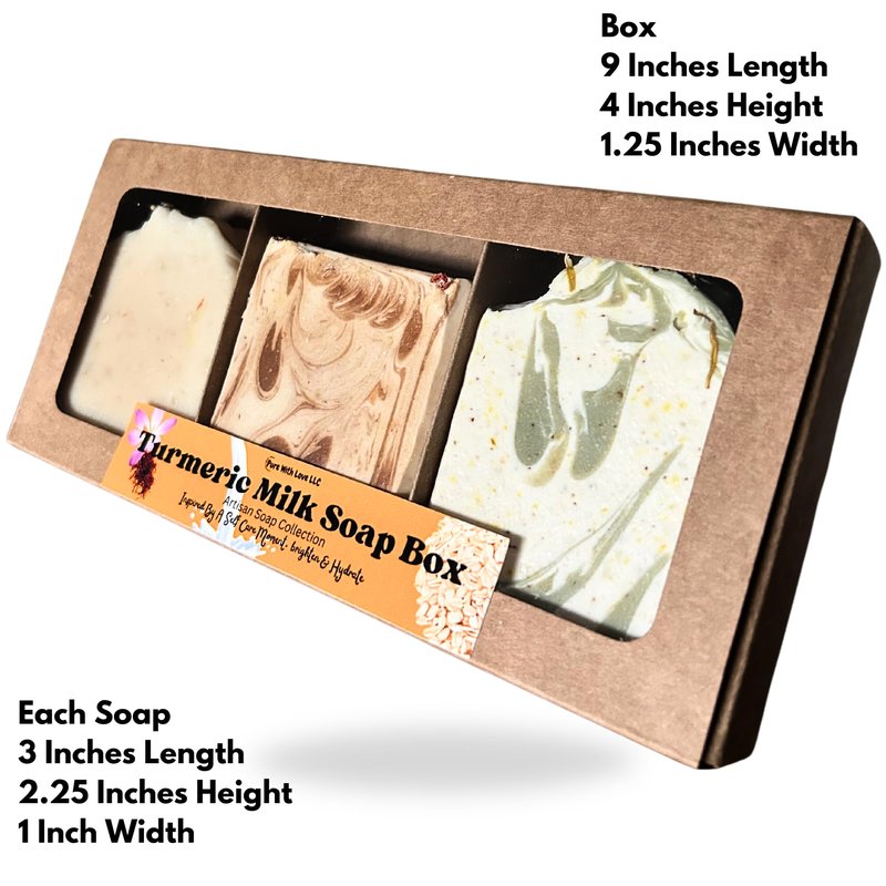 Turmeric Soap Box - Assorted 3 Bar Set, All Natural, Artisan, Clay, Goat Milk, For Face and Body All ages, Moisturing Creamy Lather