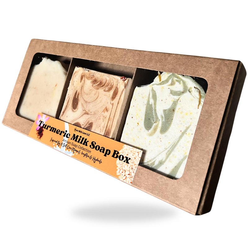 Assorted 3 Bar Set - Inspired by Turmeric and sensitive skin , focusing on the natural benefits of artisan soap , turmeric, calendula and clays . All in a Giftable Package