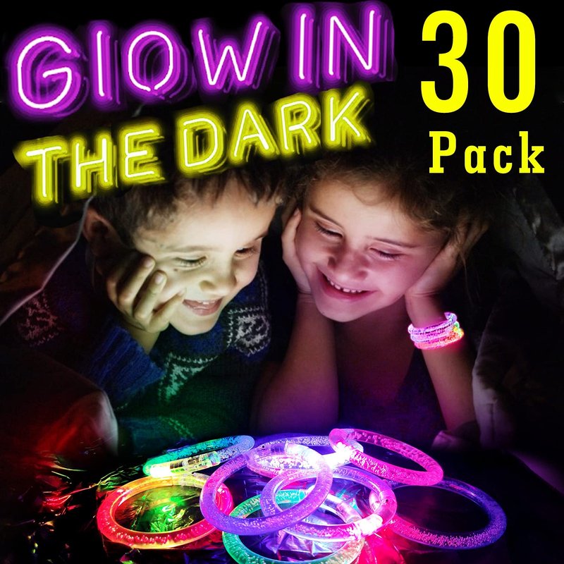 TURNMEON 30 Pack LED Bracelets Light Up Toys Birthday Gifts Party Supplies, 6 Color Glow Sticks Bracelets Glow In the Dark Party Favors Boys Girls Classroom Prizes Toys, Goodie Bags Stuffers