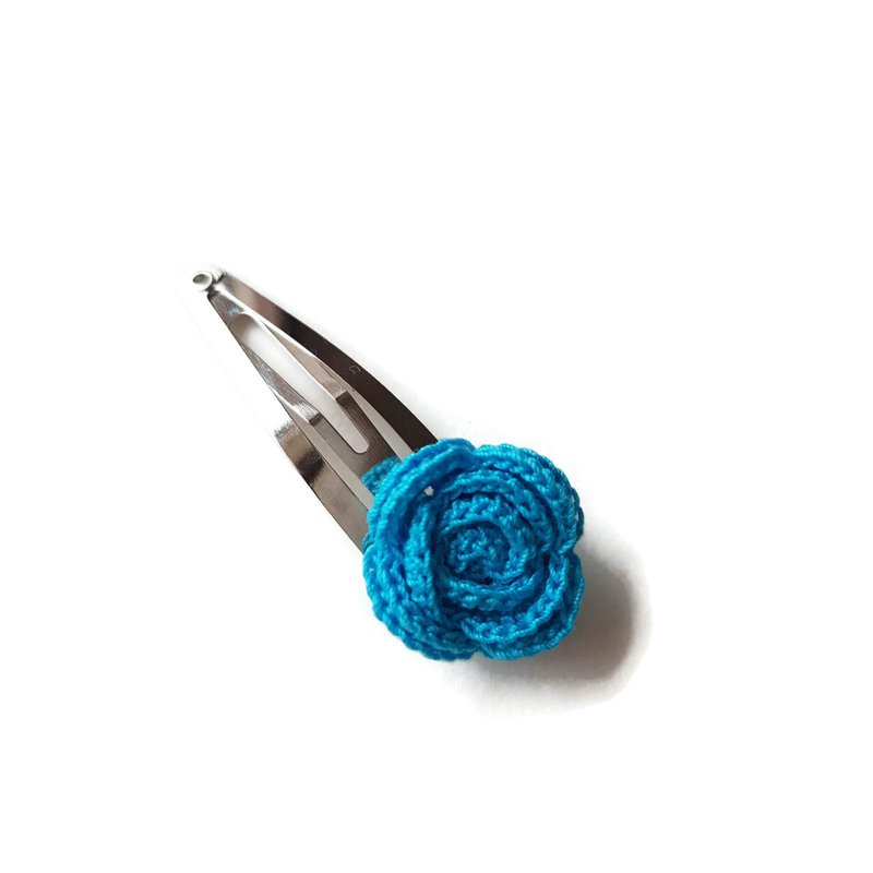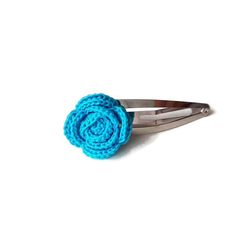 - Color: The hair clip is in a bright turquoise color. The base is silver coloured