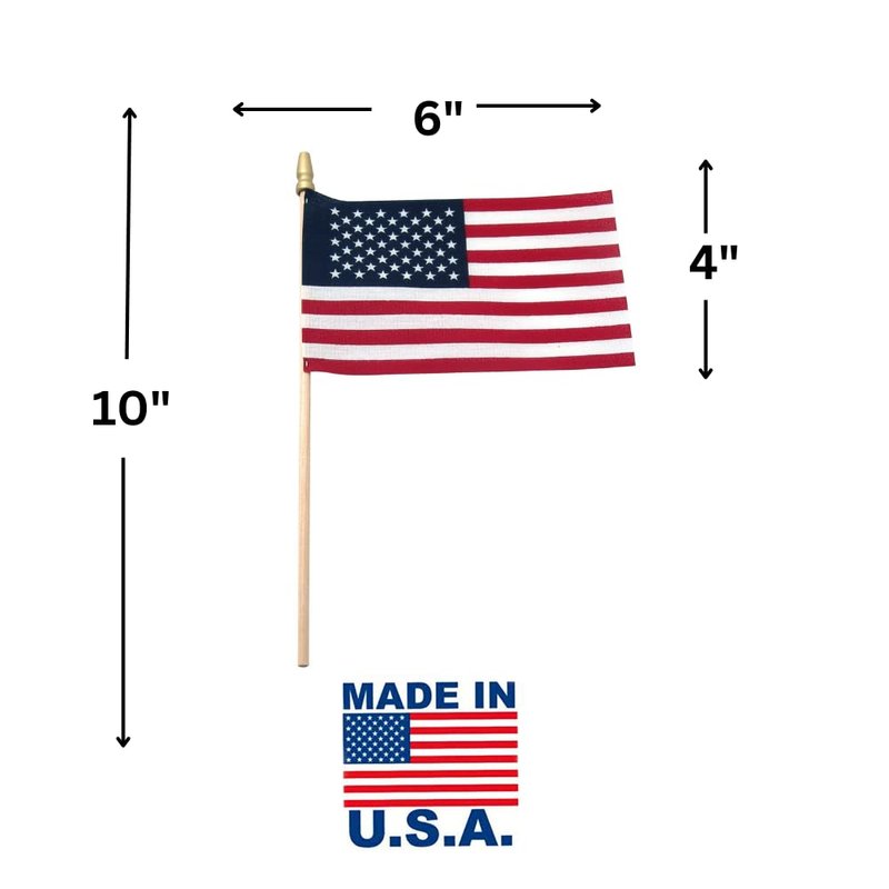 TUTARE 50 American Flags on Stick - Handheld Spearhead US Flag for 4th of July, Memorial Day Event Decorations - Patriotic Decor for Indoors & Yard - Wooden Stick, Cotton Fabric - (4"X6" - 144 Pack)