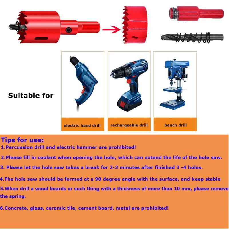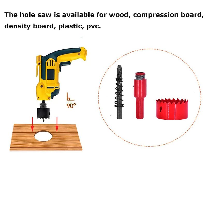 4.the hole saw should be formed at a 90 degree angle with the surface and keep stable during use.