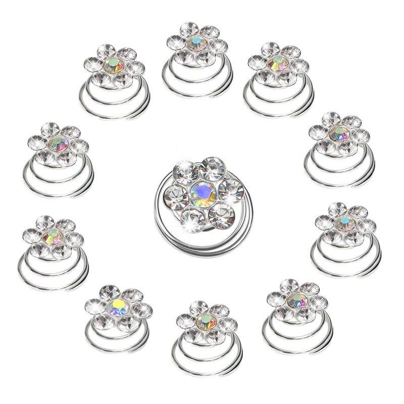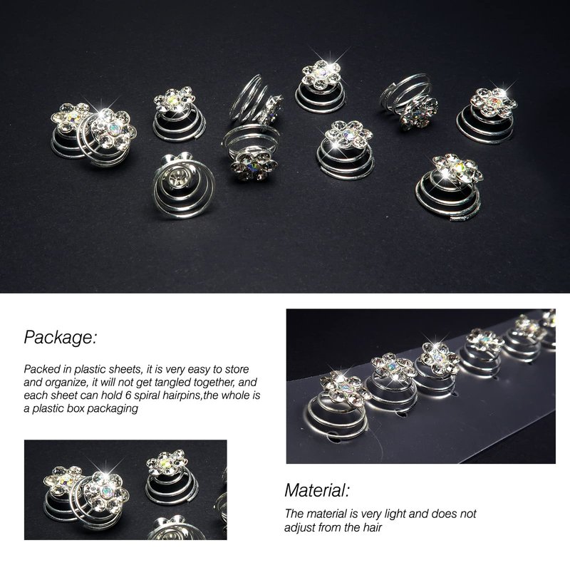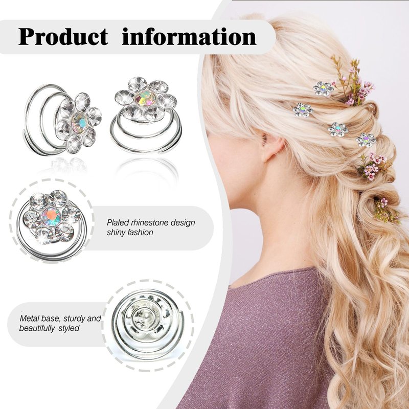 - Design: These hair pins are spiral design,shiny flower rhinestone set in a silver tone light weight spiral coil.These decorative hair pins work great in both long or short hair and in bun and braid