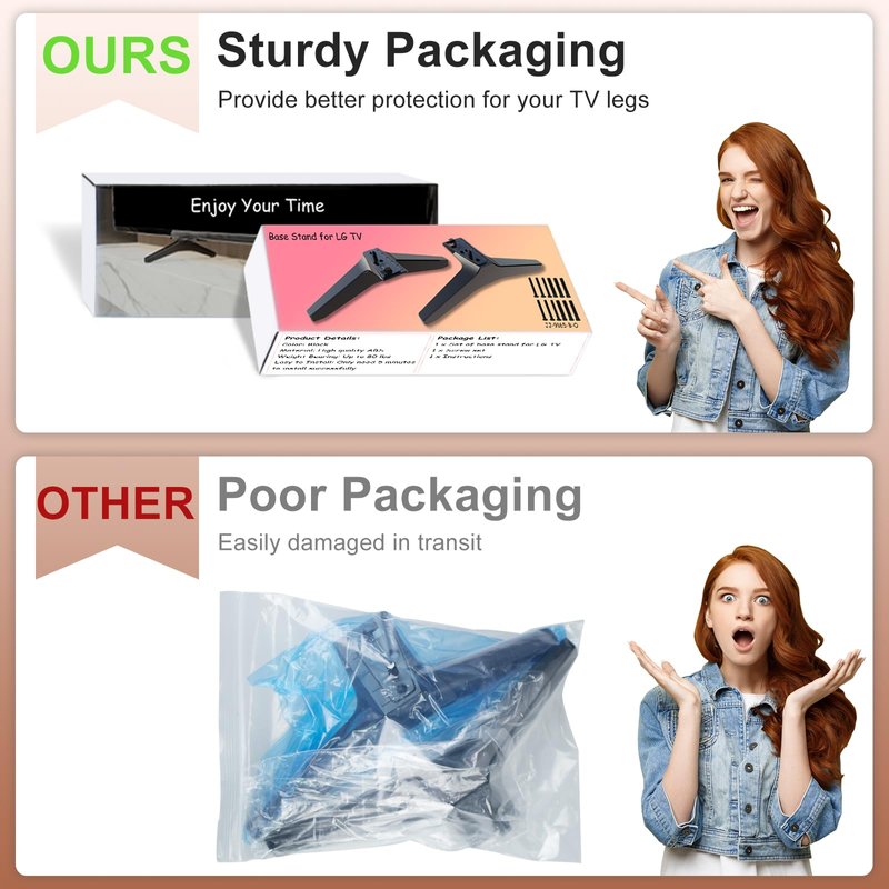 - Sturdy Package: Our package is meticulously designed to provide robust protection against external impacts and rough handling. Ensuring that your TV legs will arrive in pristine condition without any damage or scratches.