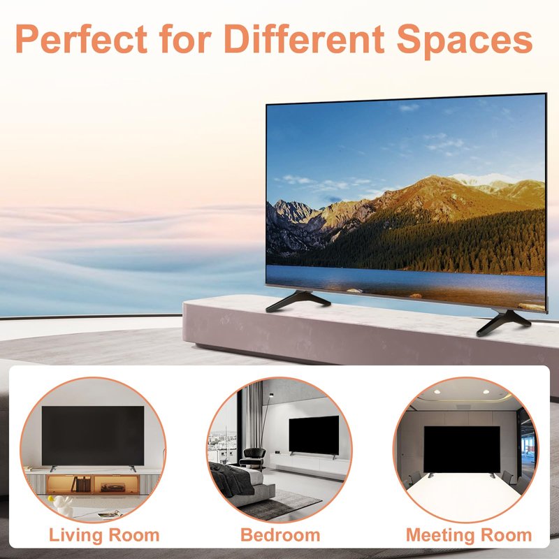 - Better Viewing Experience: By installing the TV stand legs, you can elevate your TV to the height of people's eyesight, optimizing the viewing angle and reducing strain on your neck and eyes. This improved positioning ensures that you can enjoy your favorite shows with greater comfort and immersion. With the TV stand, brings the screen right to your eye level, enhancing the clarity and enjoyment of your viewing experience.