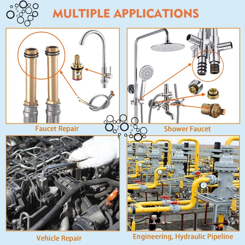 - {O RING APPLICATION}: Rubber o-rings kit used for plumbing faucet repair,pressure washer hose,machinery bearings, pumps, boats, oils, gas control valve,air or Gas water fitting leak seal.