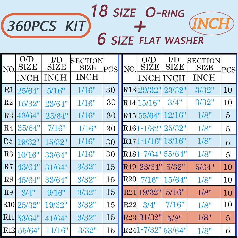 - {O RING SIZE}: Oring kits 18 size OD:11mm, 12mm, 13mm, 14mm, 15mm, 16mm, 17mm, 18mm, 19mm, 20mm, 21mm, 22mm, 23mm, 24mm, 25mm, 26mm, 27mm, 28mm.
