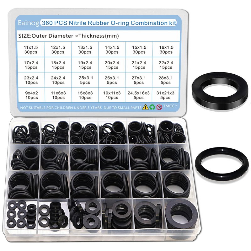 TWCC 6 Size Water Hose Gasket and 18 Size O Ring Rubber Washer Assortment Kit 360PCS Nitrile Washers Set for Plumbing Faucet Pipe Hose Shower Head Pressure Washer Sealing Repair OD 9-31MM