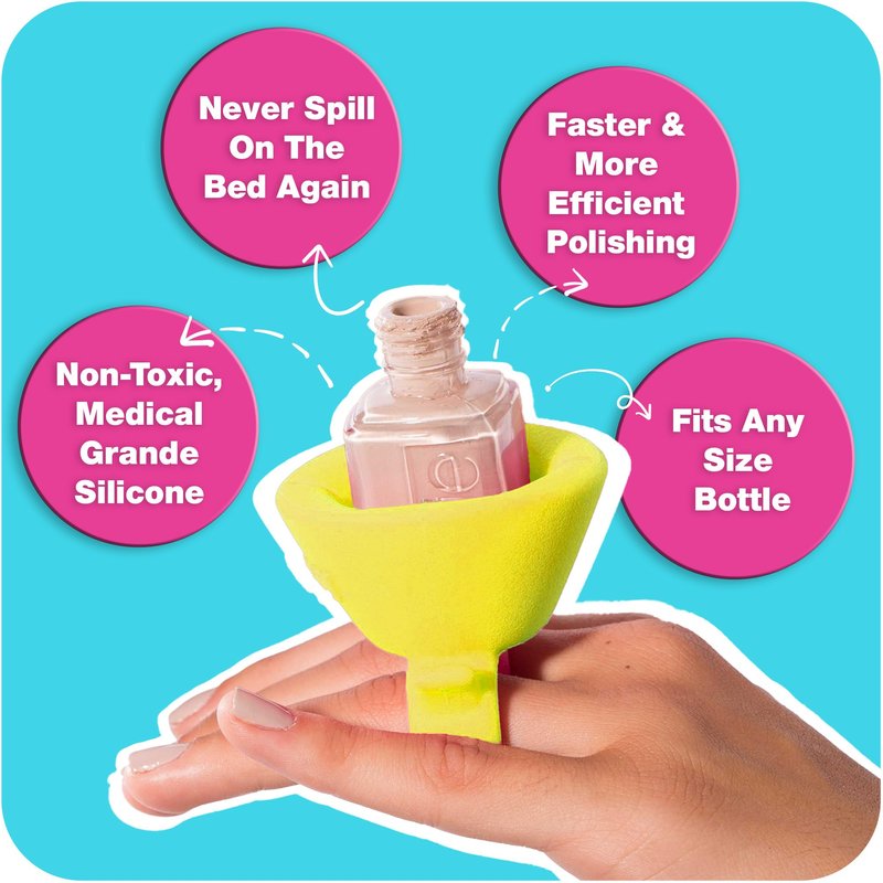 - MESS-FREE FUNCTION. You'll never have to worry about spills or messes from dripped polish when you use a secure, sturdy manicure holder to keep your nail polish bottle in place. Investing in the right nail polish holder not only ensures efficiency and convenience but also gives you the shortest distance from bottle to finger that you can get.