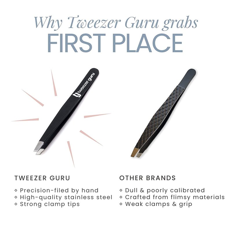 Are you sick of dealing with second-rate tweezers that never seem to grab any hair? Do you have trouble finding a good pair of tweezers that last longer than a few months? Are you annoyed of finding your tweezers suffering from misaligned tips? Your search for the perfect tweezers is finally over! Shape beautiful eyebrowstoday. Tweezer Guru Pointed Tweezers to the rescue. Our high quality stainless steel tips allow for precision removal of eyebrow and facial hair with ease. Eyebrow plucking is made effortless as these tweezers pick up the smallest individual hair that standard tweezers would not get. We want you to absolutely love your Tweezer Guru tweezers. If you don’t, just return them, and we will return every penny.