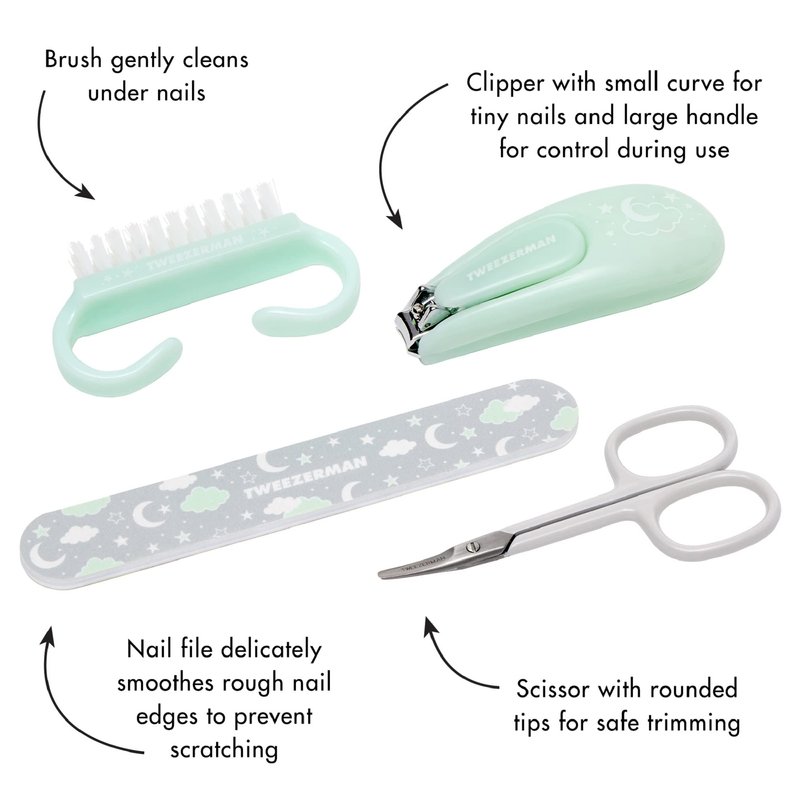 - tweezerman baby manicure kit (4 piece kit): buy tweezerman manicure pedicure tools - tweezerman children's manicure kit (4 piece kit) includes: nail clipper grooming brush trimming scissors nail file